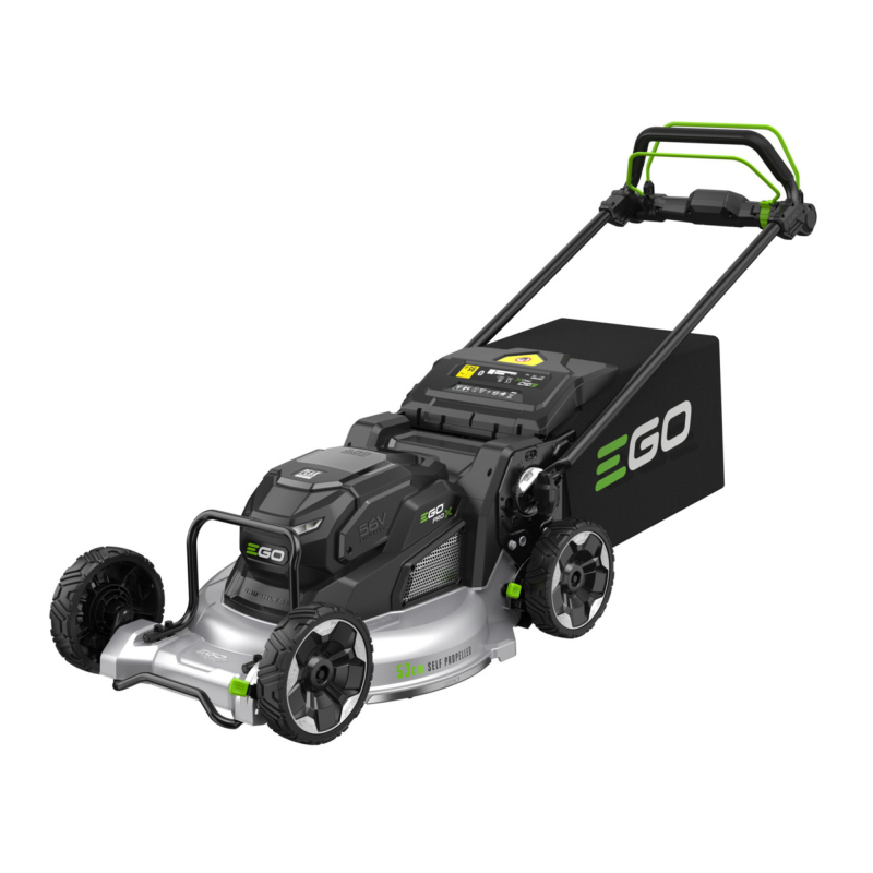 Model EGO PRO X LMX 5300E-SP - extrémně odolná zahradní akumulátorová sekačka, záběr sečení 53cm, podvozek odlitý z hliníkové slitiny, variabilní pojezd, objem sběrného koše 85L, výškově nastavitelná pevná a pohodlná rukojeť dělají z tohoto modelu mimořádně odolný stroj. A hlavně mimořádně silný elektromotor dělá z tohoto stroje opravdu zdatného "likvidátora" travního porostu v profesionálním pojetí.
